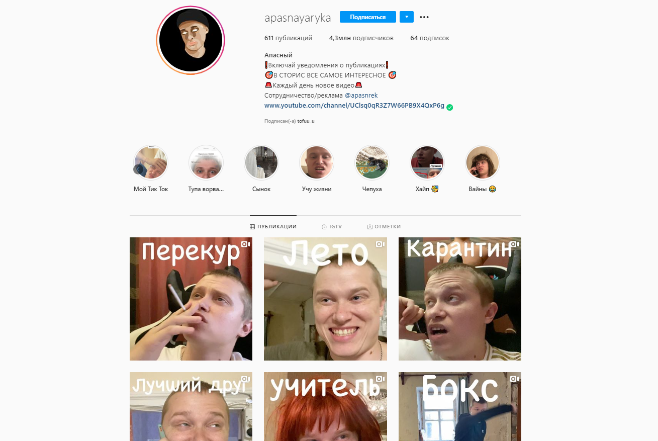Контент Вадима Артемова в Instagram и YouTube